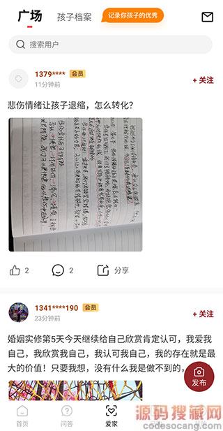 3、软件还提供了类似于广场的功能,用户只需要来到【爱家】页面,点击右下角的按钮就可以进行动态发布了。