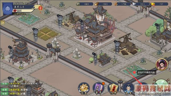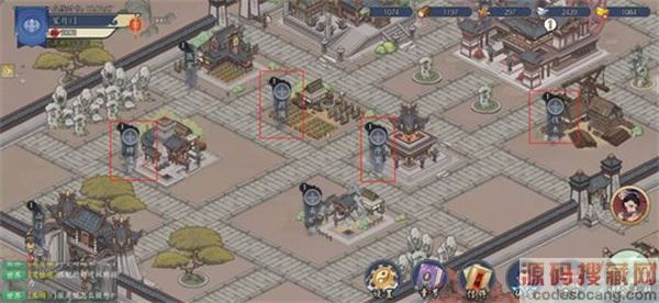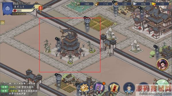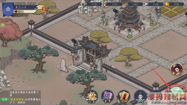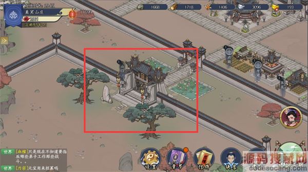 1、当掌门选定出生地点,正式进入江湖后便会来到属于你的宗门领地。在此各位掌门可以进行模拟经营,建立门派建筑,安排弟子进行采集等工作。