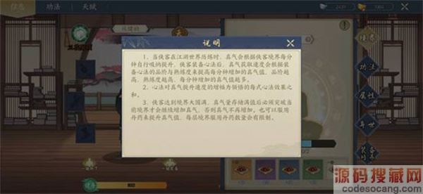 4、静室弟子可在静室进行运功与突破,运功需要研读心法后才可以进行,突破则需要该侠客真气满足当前上限才可进行突破。