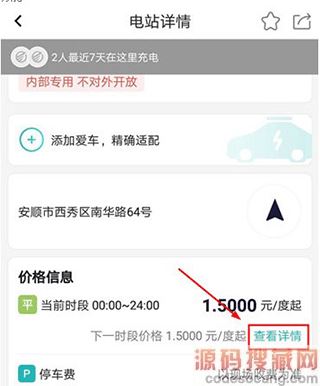 1、打开顺易充APP,在地图首页上点击进入到电站的详情介绍界面,然后就可以看到价格信息,用户可以点击“查看详情”功能。
