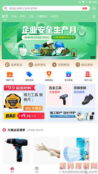2、切换到【分类】页面之后,我们还能看到非常详细的商品分类,如劳保、安防、标识、手工具等。