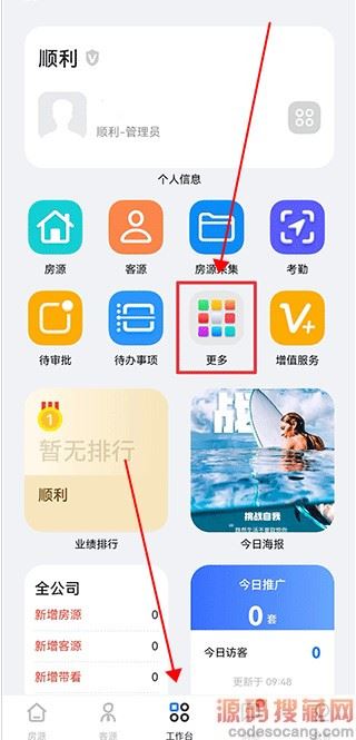 1、首先我们打开软件,注册登录后来到首页,进入工作台版块,然后点击更多