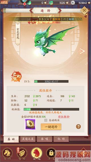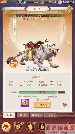 2、进阶:同样是使用“进阶石”来对其进行进阶,这个材料可以通过宠物副本、商店、BOSS随机掉落等方式来获取。