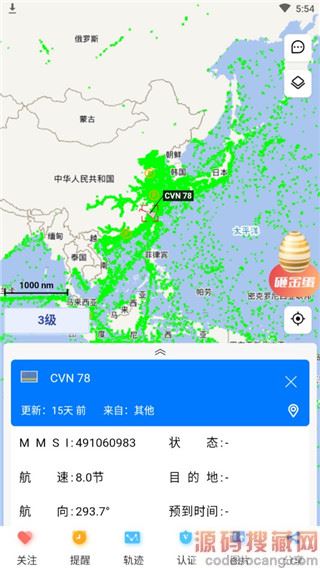 2、在搜索栏中输入船只名称或mmsi编号,可以查看船只最新动态