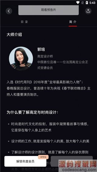 4、当你选择你所感兴趣的课程时,你可以查看各个大师的简介以及他们对该课程方面的讲解;