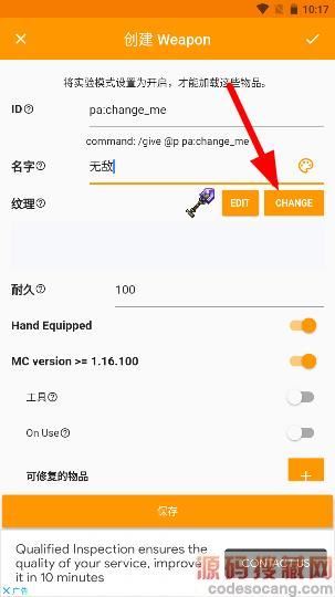 4、选择好物品后进入编辑界面,那个id不用改,名字可以自己随便输入然后点击字多的那个按钮;