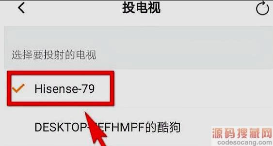 5、进入到投电视页面后,在页面上可以看到电视名称,点击选中要进行投屏的电视名称;