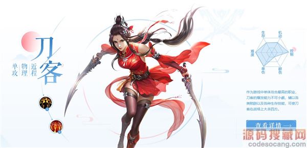 近战物理单攻职业,作为游戏中单体攻击最高的职业,刀客的爆发能力不可小觑,辅以各类陷阱以及各种生存技能,可使刀客在战场上大杀四方。