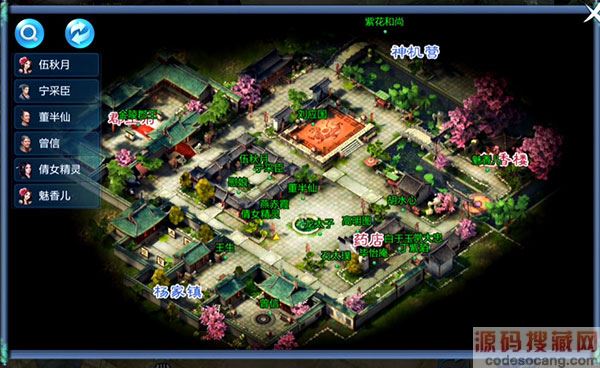 5、组队后却发现队友不在身边?点击屏幕右上角打开当前场景地图,即可查看队友和怪物分别在何处。左上角的放大镜图标是查询按钮,用它可以快速寻找重要的NPC。点击切换按钮则会切换到世界大地图,在非战斗情况下,可以快速传送到指定场景地图。