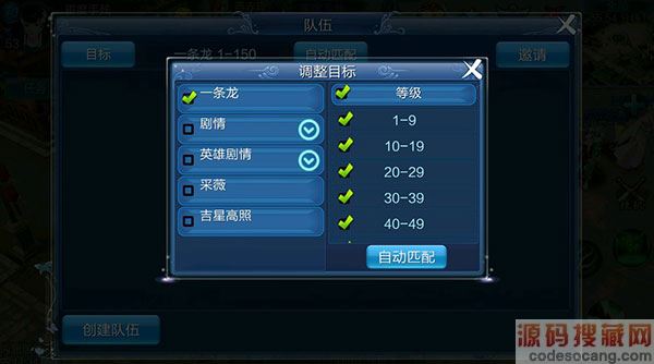 3、想组队做任务却没有认识的小伙伴?游戏中有强大的自动匹配功能,打开组队面板,在“目标”选择要参加的活动,就能一键组队!