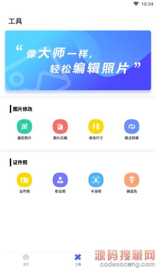 2、在工具菜单栏可以看到有裁剪、压缩、换底色、智能抠图等功能;