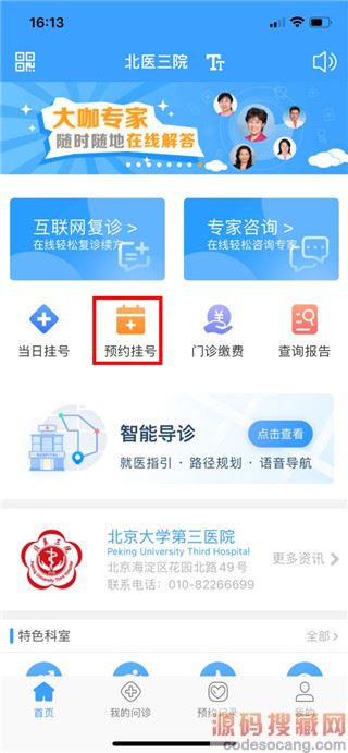 1、打开app,选择【预约挂号】。