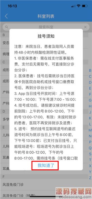 3、阅读挂号须知后点击【我知道了】。