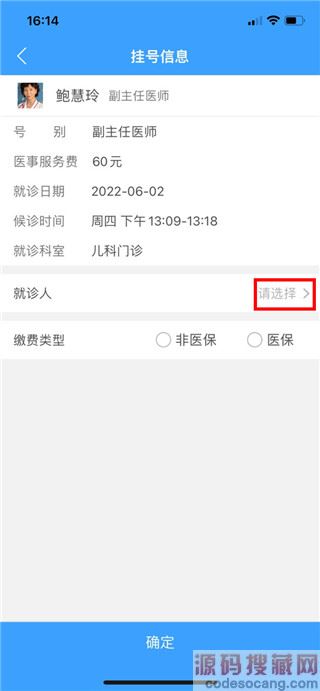 7、选择好就诊人、缴费类型,点击下方的【确定】即可。