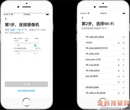2、连接摄像头Wi-Fi(以TP-LINK_IPC为开头的Wi-Fi),点击【下一步】选择需要连接的Wi-Fi,输入密码即可成功添加设备。