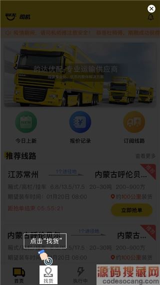 2、然后点击找货列表,选择符合自己的路线,车型等信息的订单。