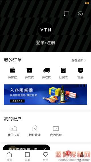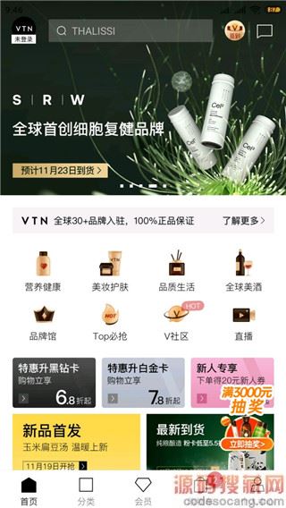 1、在本站下载并安装vtn购物平台,进入首页可以查看app各项功能