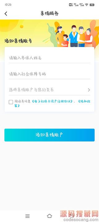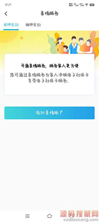 4、选择添加亲情账户,已绑定的可以选择被绑定的页面来查看家人电子社保卡信息。