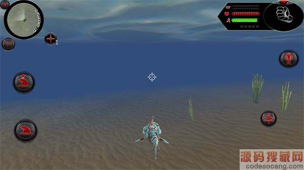 3、玩家在水中可以切换成其他状态,比如鲨鱼形态,这样能在水中肆意移动。