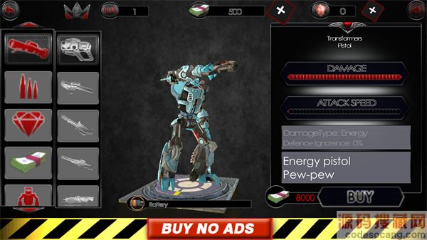 4、在商店能购买各种不同形态的机甲,也可以购买杀伤力不同的武器。