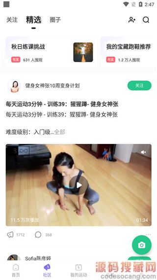 4、在社区中你可以看到很多健身达人、教练,并关注他们的健身动态,能够让你了解更多练习技巧;