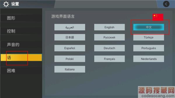 2、进入设置页面,找到语言选项,可以选择游戏内容为中文版游戏内容。