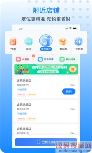 1、打开胖乖生活APP官方版,可查看附近店铺,定位更精准,预约更准时;