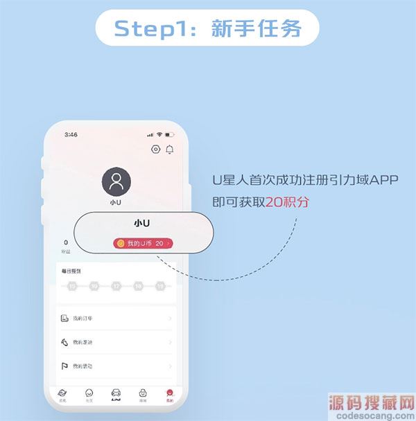 1、用户首次成功注册引力域APP即可获取20积分。
