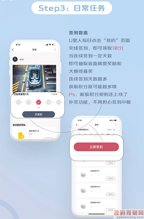 连续签到天数越多,获取积分就可能越多哦。新版积分规则还上线了补签功能,不用担心签到中断。