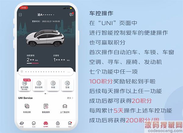 在UNI页面中进行智能控制爱车的便捷操作也可赢取积分。