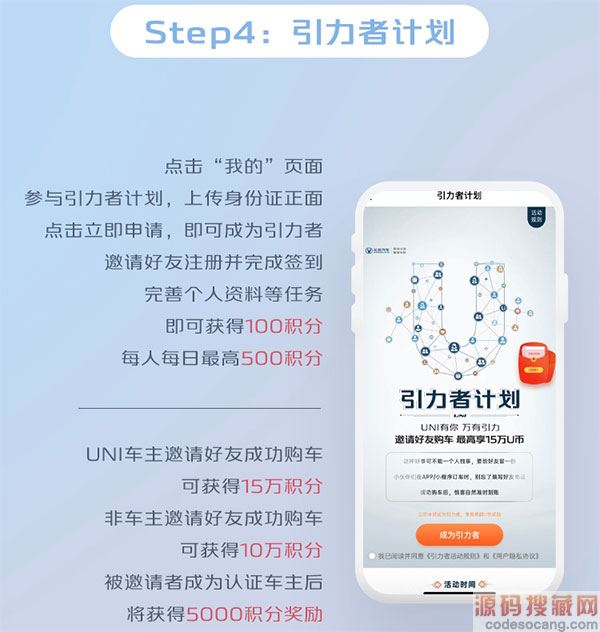 UNI车主邀请好友成功购车,可获得15万积分。