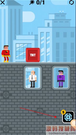 2、左边是人质,右边是能够隔绝你超能力的劫匪,你需要合理利用图中的物体来消灭敌人