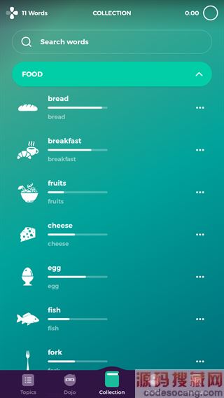 6、Dojo是利用最优的学习方法练习单词的训练营,学习一定数量的单词后即可解锁。