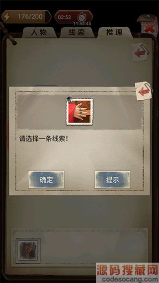 8、将所有结果都明了后,选择已经收集到的线索,点击【提示】按钮可直接获得结果。