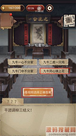 12、下一句是什么:九牛同心锦上花。当然你也可以选择【看视频选择正确答案】,也是免视频,直接跳过哟。
