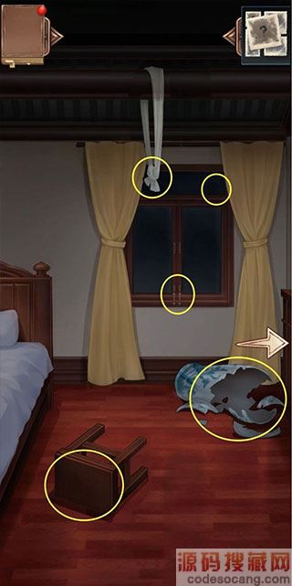 选择:第三条白绫、悬梁白绫2、悬梁白绫、房梁上的黑手印、第二只手印和第三只手印。
