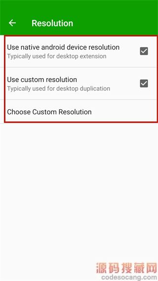 3、点击Resolution进行设备的分辨率设置,勾选需要的选项即可。