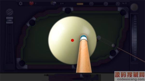 3、点击右上角的母球还可以控制母球的击打点位,可以进行类似扎杆跳球等进行打法。