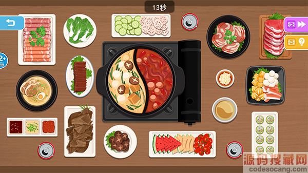 6、这关我们需要把桌子上的火锅食材,放在指定的位置上。