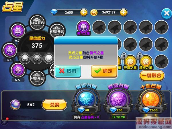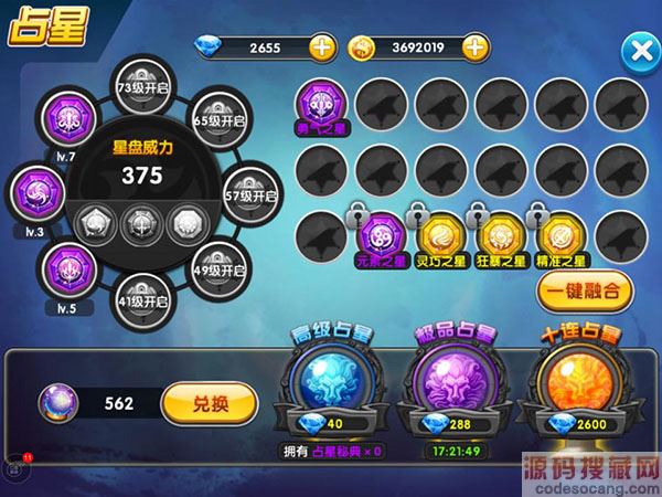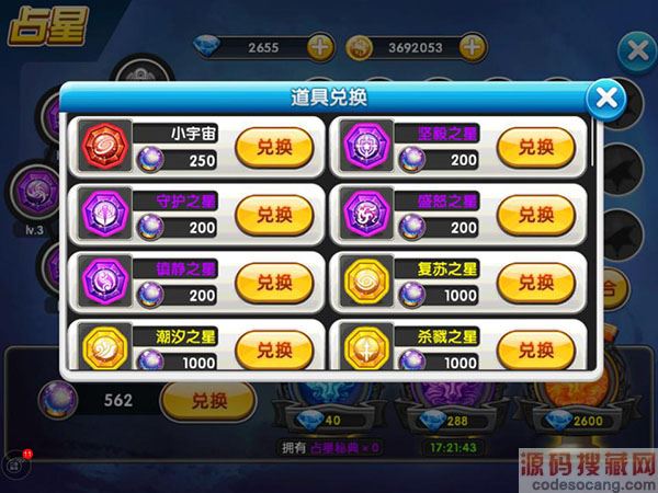 4、占星兑换:可兑换经验小宇宙、部分紫色和黄色星座。多一半是增加属性百分比的星座。