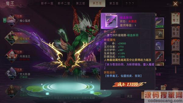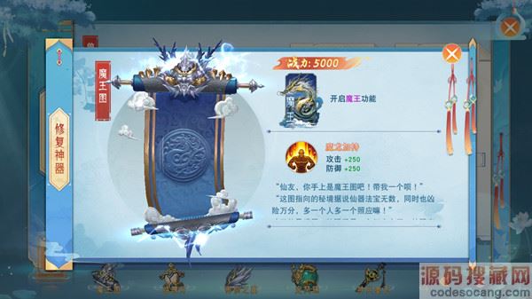 ??穹苍世界上除了有修仙者,还有许多魔王在作威作福,作为具备常人没有的能力的上仙们,在对抗魔王的战线上自然是首当其冲。打魔王并不是没有好处的哦,相反,装备的升级培养大部分都依赖BOSS掉落,玩家们还可以从BOSS手里获得图片、天神碎片与法宝外观等,令人非常羡慕,上仙们完成修复魔王图的任务之后就可以挑战魔王了。魔王虽然很多,但是上仙们应该选择与自己等级差不多的魔王挑战,甚至是比自身等级稍高一些也可以,但是如果看见魔王的名字是红色的,那么建议最好不单独前去挑战了。