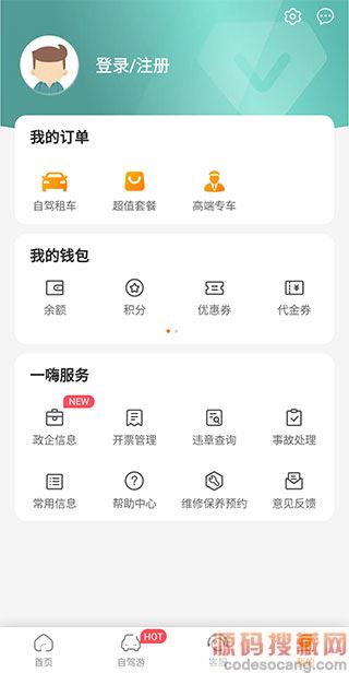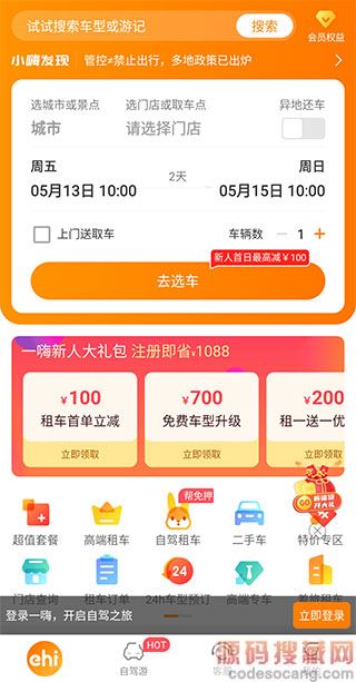 1、进入软件【首页】之后,我们就能看到常用的租车出行功能,输入有关信息后即可选车出行。