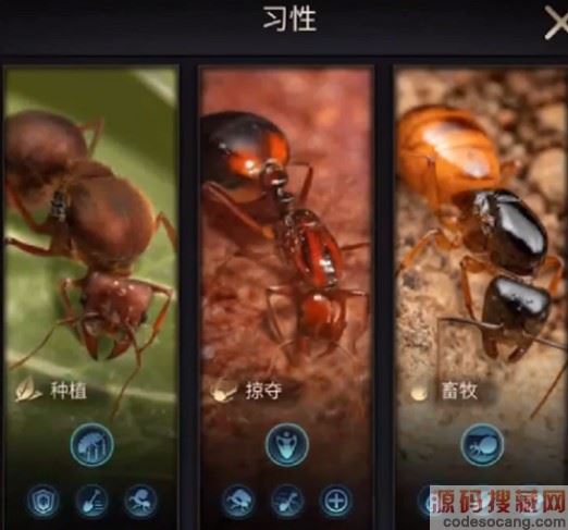 4、需要多注意的是培养运输蚁的负重,保证每次外出采集都能满载而归,屯够资源,发育完成后再选择掠夺习性,增加编队额外攻防增益,对外掠夺。
