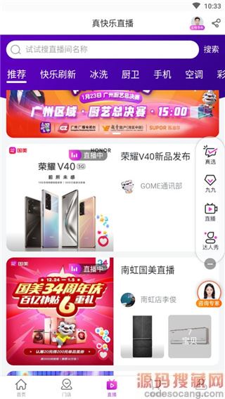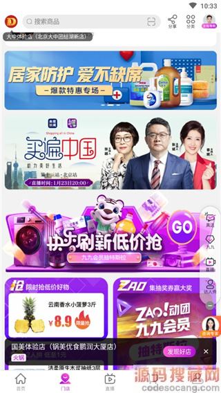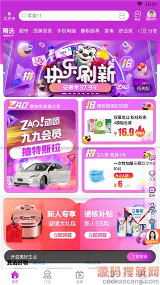 1、下载打开进入主界面中有很多版块内容商品可随意选购;