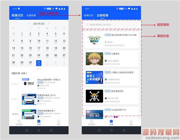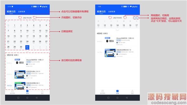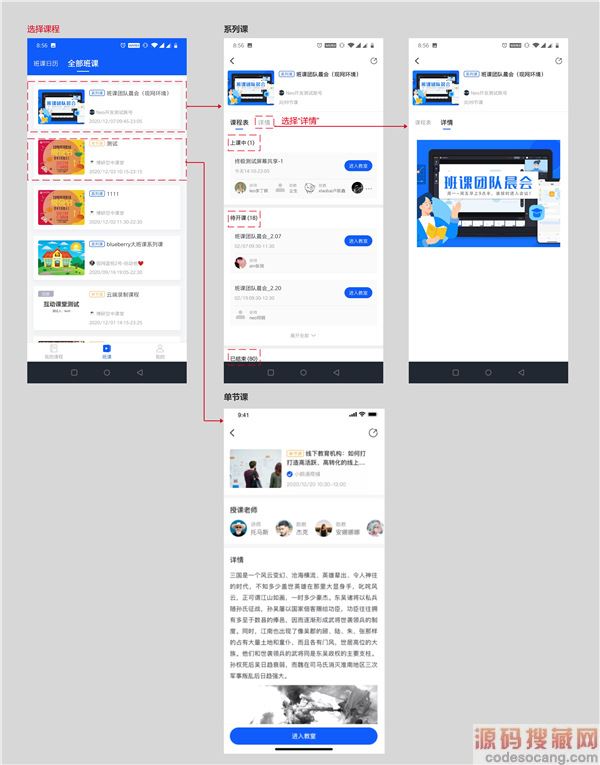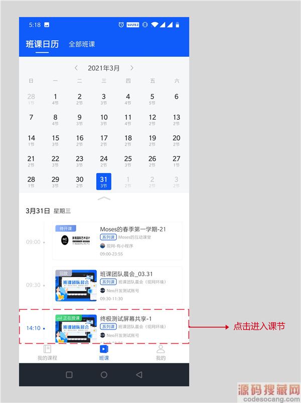 【单节课】则无课程表,直接显示详情页和进入教室按钮。