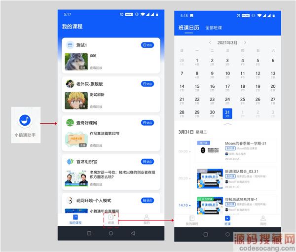 第一步:启动小鹅通直播平台APP后,在底部选择“班课;