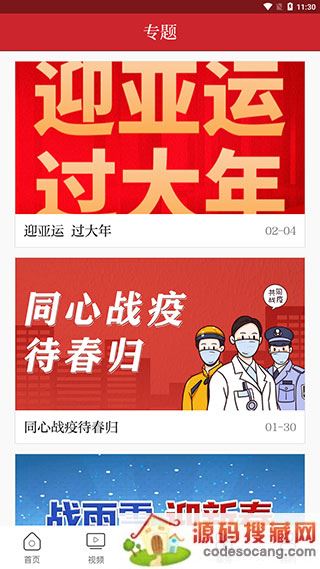 3、【专题】:此页面显示的是软件所推出的特色专题板块,其中包含的一般是热点事件,如迎亚运过大年和同心战疫待春归。