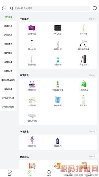 2、切换到【分类】页面之后,我们还能看到非常详细的商品分类列表,如个护美妆、家清厨卫、汽车用品等。