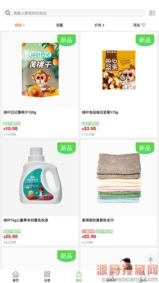 3、而在【商品】页面,我们还可以根据销量、价格等条件进行商品筛选,或者也可以直接搜索具体的商品。