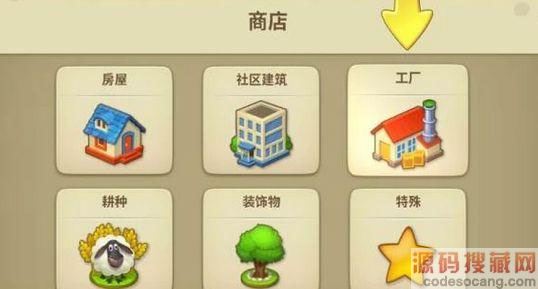 收获的小麦可以作为其他食物的制作原料。让我们去建造一个工厂,然后点击黄色的帽子这个图标,这个图标代表的是商店,点击要建造好的工厂就可以了。
